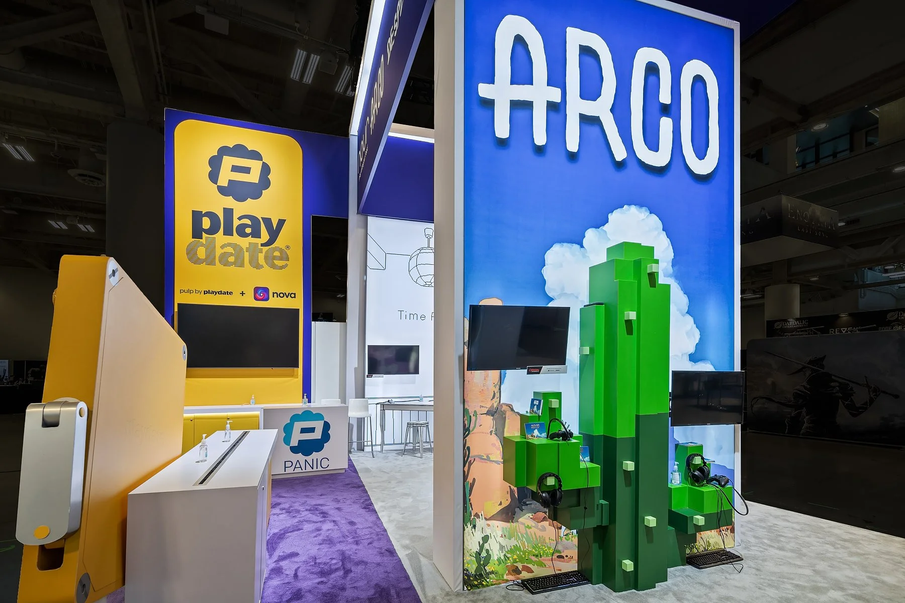 As a first time exhibitor at PAX West prior to the pandemic, Panic, at the time, had only released two popular indie titles - Firewatch and Untitled Goose Game. In the initial concept/design stage, we utilized the highly stylized graphics and visuals from Firewatch to anchor our overall booth space. We then paired the space with their other title, Untitled Goose Game to augment the other side of the booth.